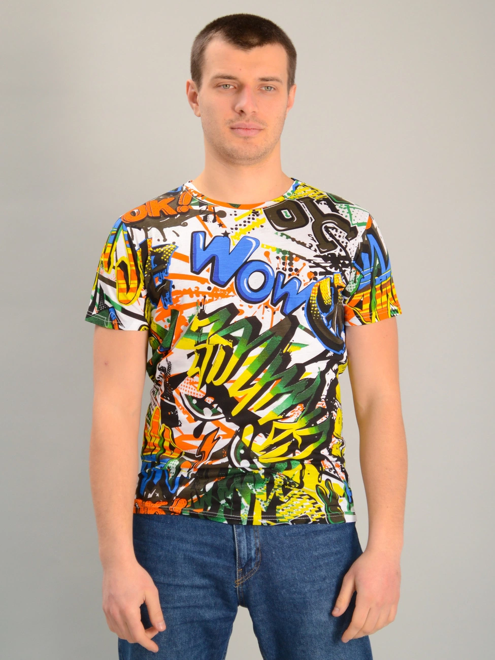 Чоловіча футболка в принт біла, Ростовка (5 шт)