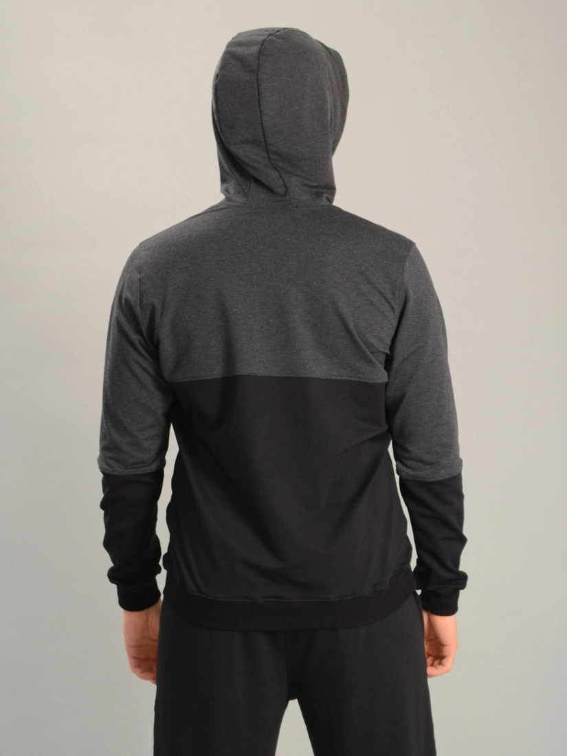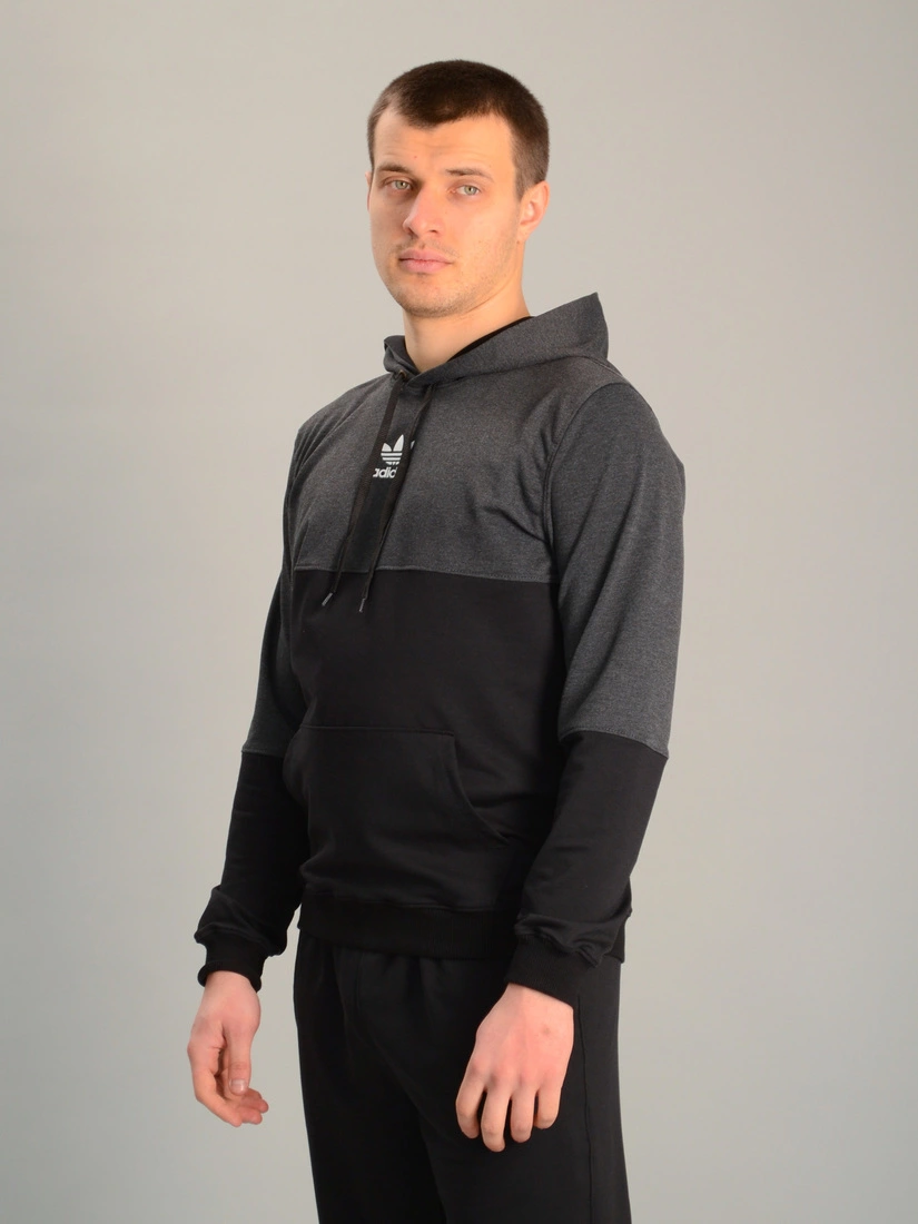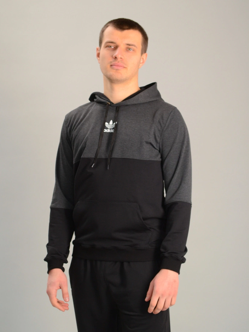 Чоловіча спортивна двоколірна кофта-кенгуру adidas антрацитово-чорна, Ростовка (4 шт)