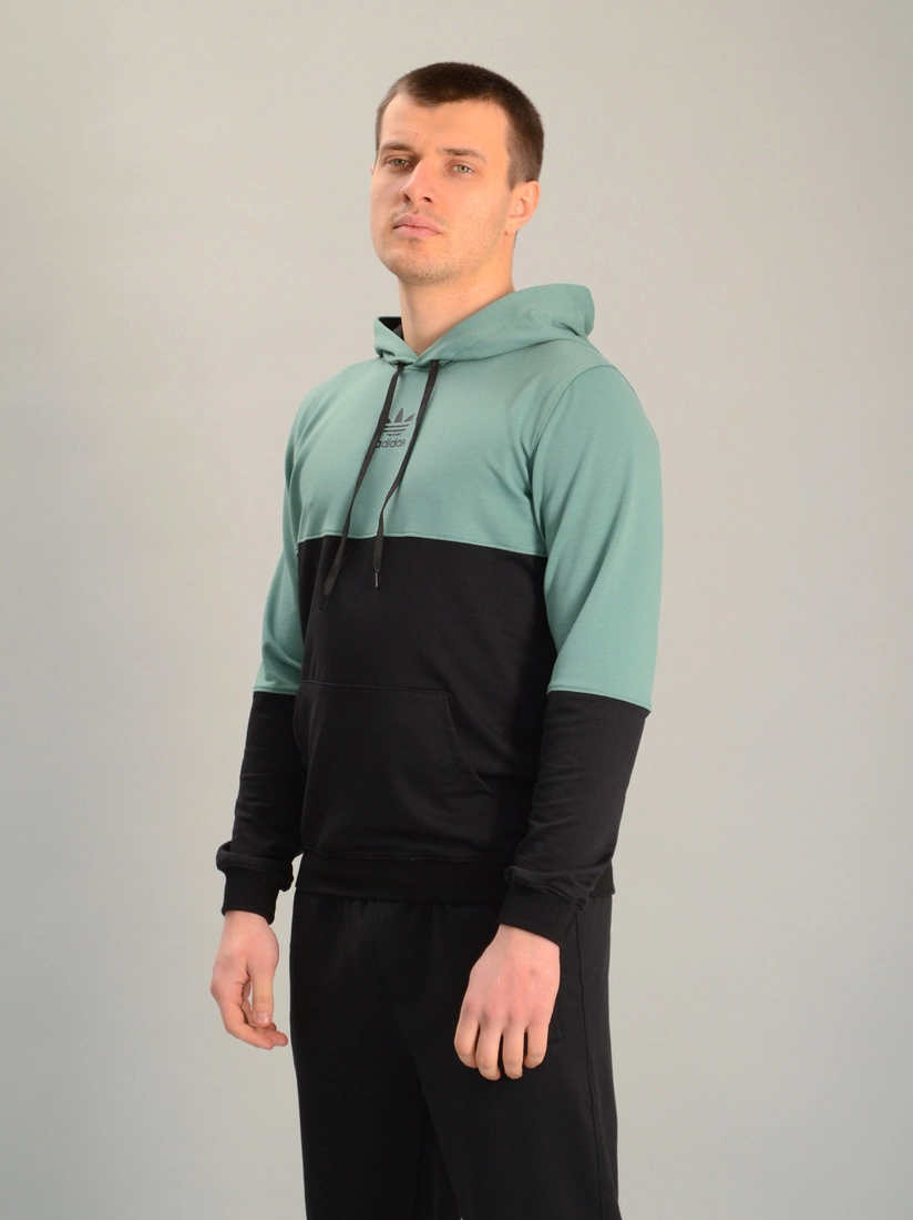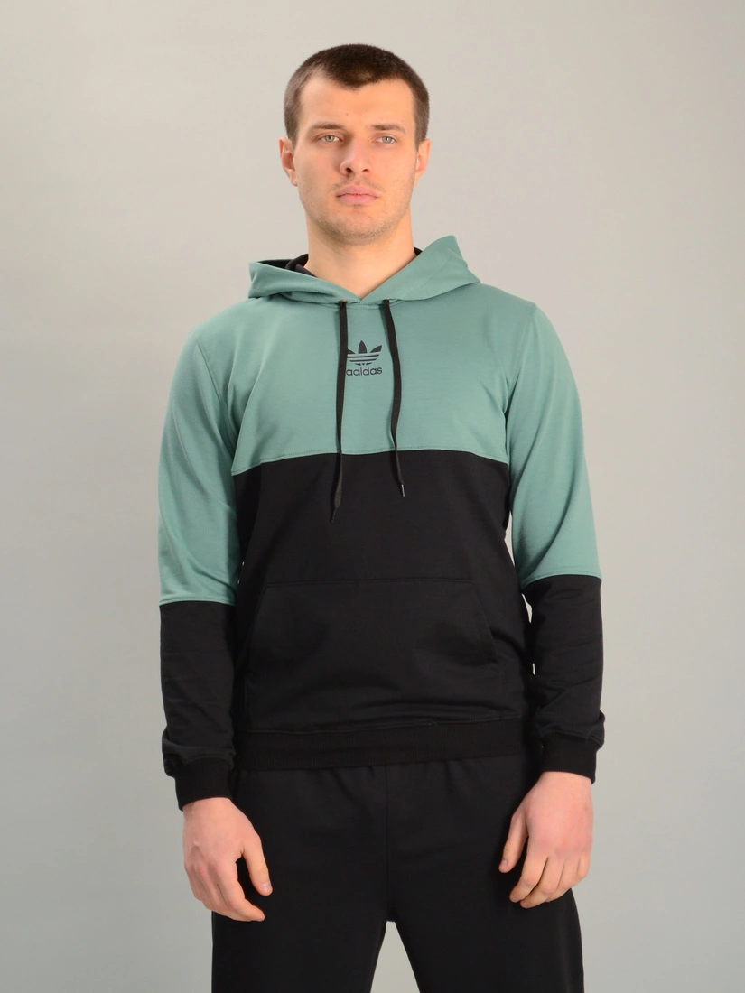 Чоловіча спортивна двоколірна кофта-кенгуру adidas м'ятно-чорна, Ростовка (4 шт)