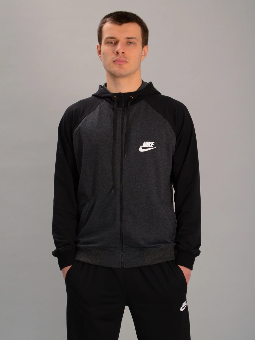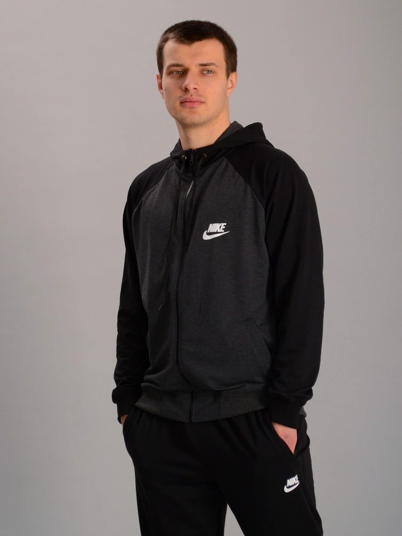 Чоловіча спортивна двоколірна кофта на замку з капюшоном nike антрацитово-чорна, Ростовка (4 шт)