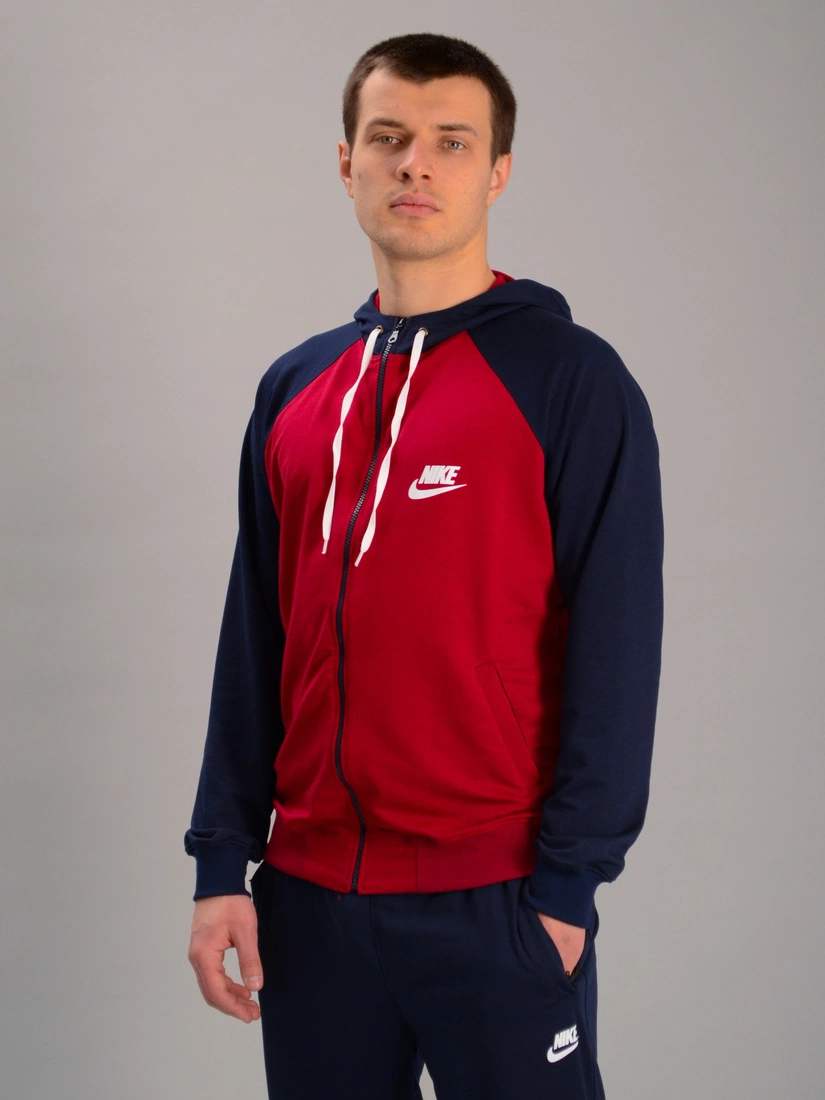 Чоловіча спортивна двоколірна кофта на замку з капюшоном nike бордово-синя, Ростовка (4 шт)