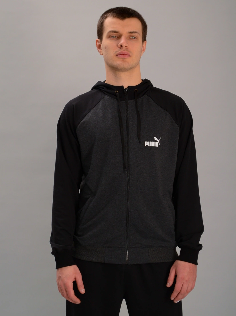 Чоловіча спортивна двоколірна кофта на замку з капюшоном puma антрацитово-чорна, Ростовка (4 шт)