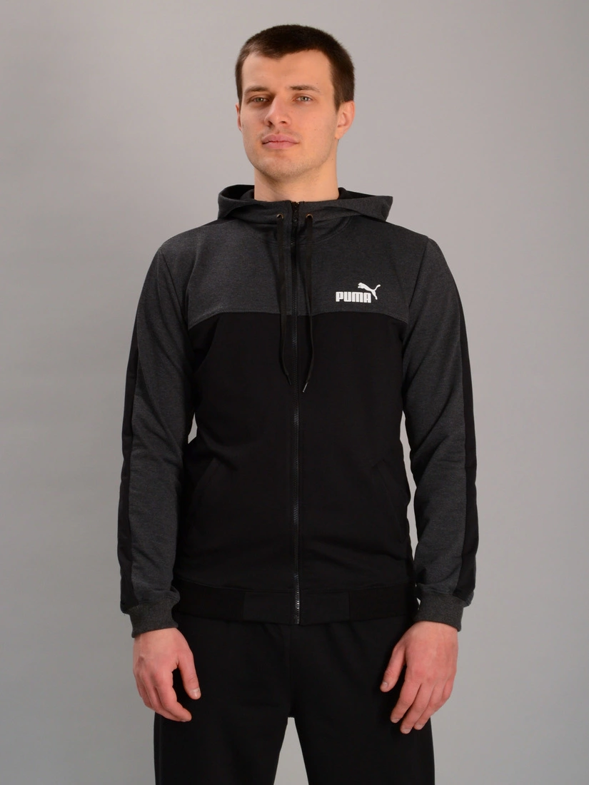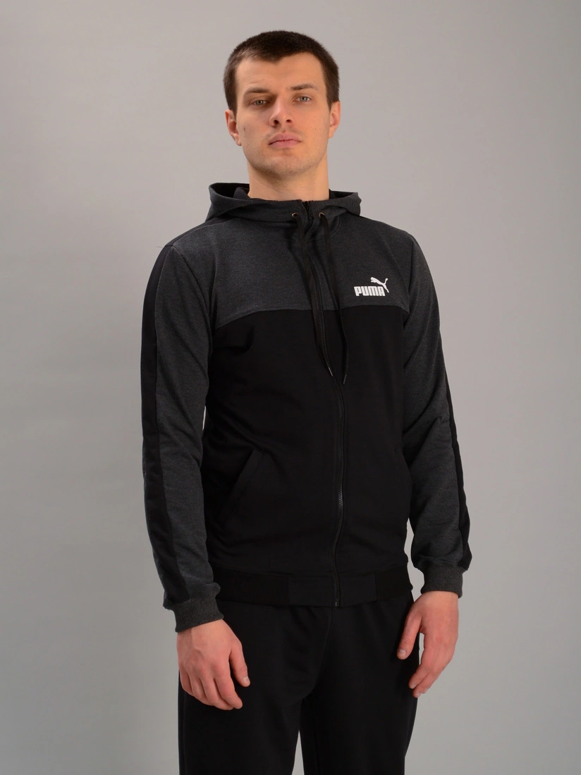 Чоловіча спортивна двоколірна кофта на замку з капюшоном puma антрацитово-чорна, Ростовка (4 шт)