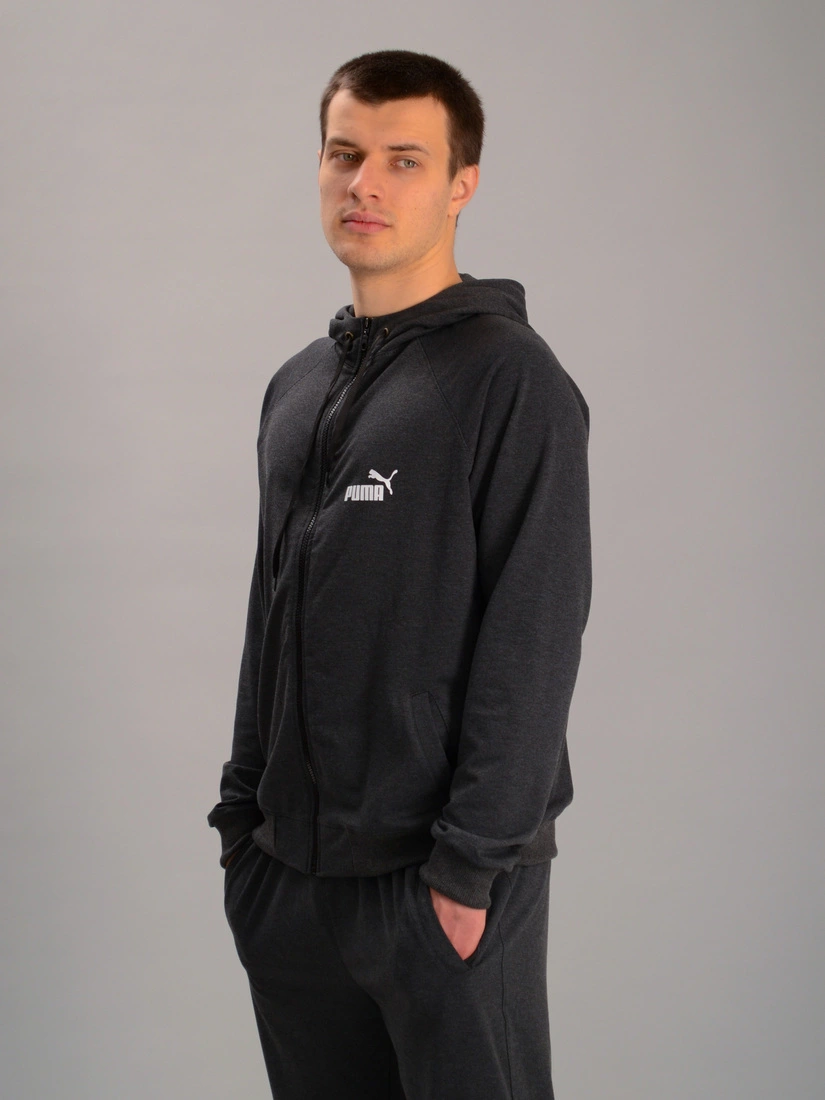 Чоловіча спортивна кофта на замку з капюшоном puma антрацитова (батал), Ростовка (3 шт)