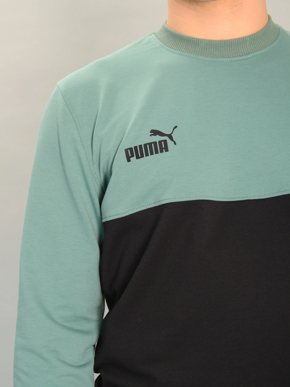 Чоловічий спортивний двоколірний світшот puma м'ятно-чорний, Ростовка (4 шт)