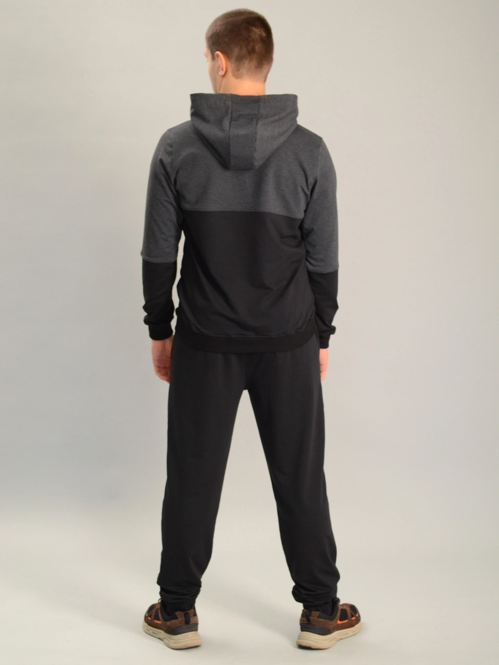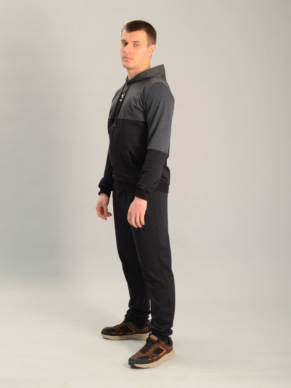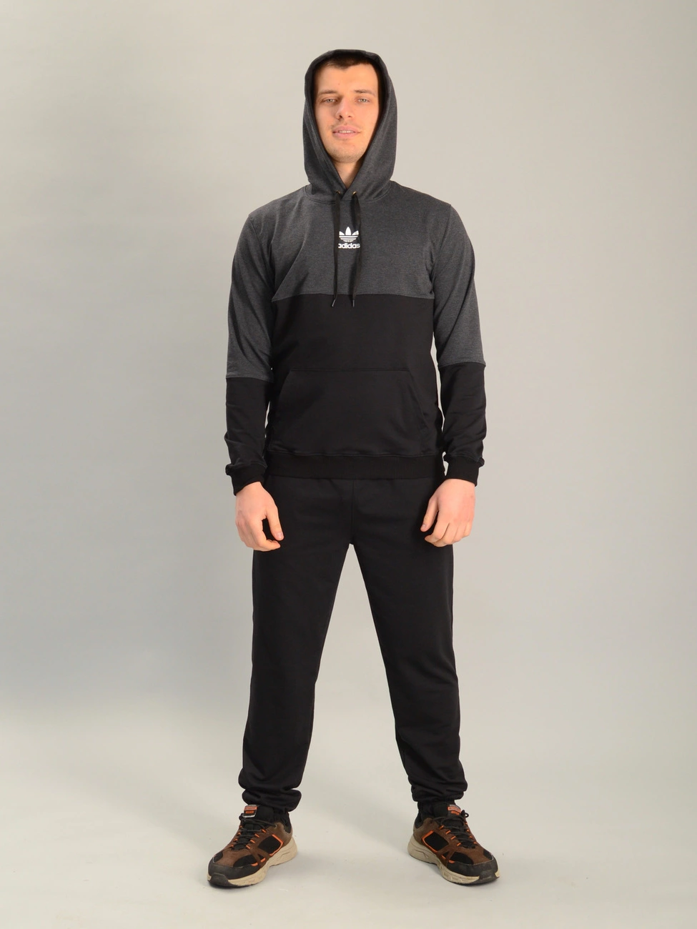 Чоловічий спортивний костюм із кофтою-кенгуру adidas антрацитово-чорний, Ростовка (4 шт)