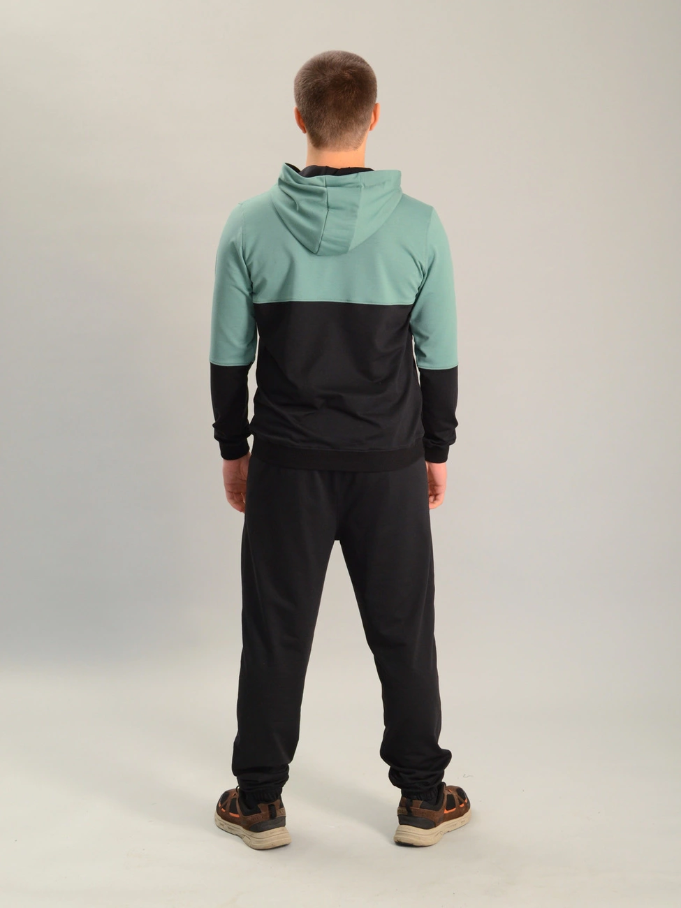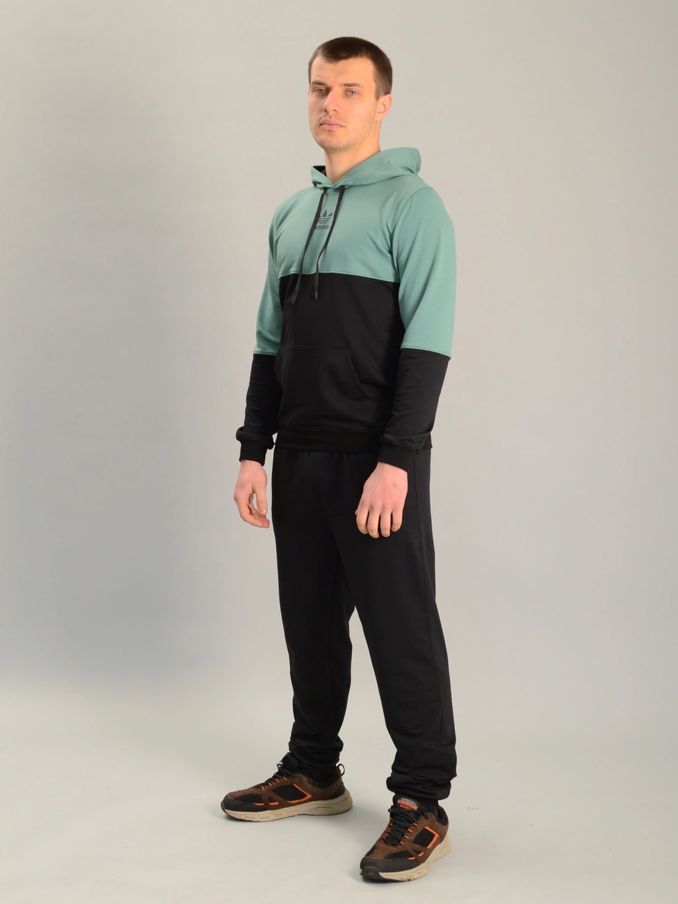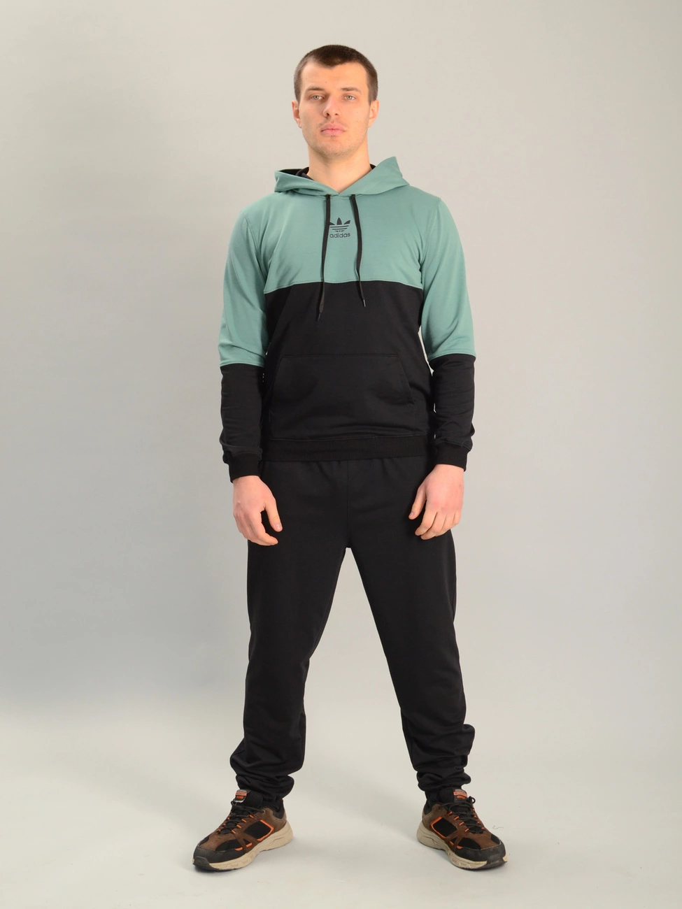 Чоловічий спортивний костюм із кофтою-кенгуру adidas м'ятно-чорний, Ростовка (4 шт)