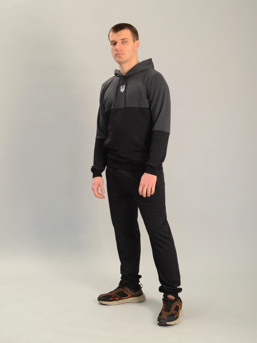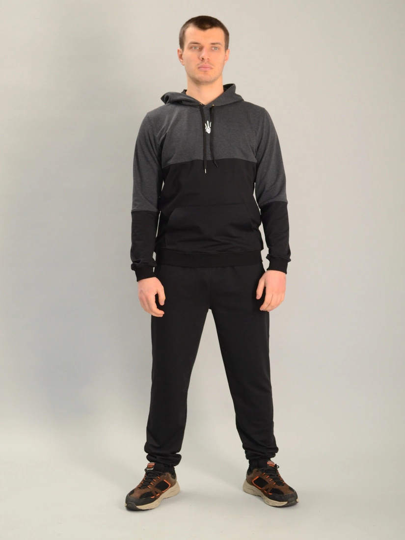 Чоловічий спортивний костюм із кофтою-кенгуру gerb антрацитово-чорний, Ростовка (4 шт)