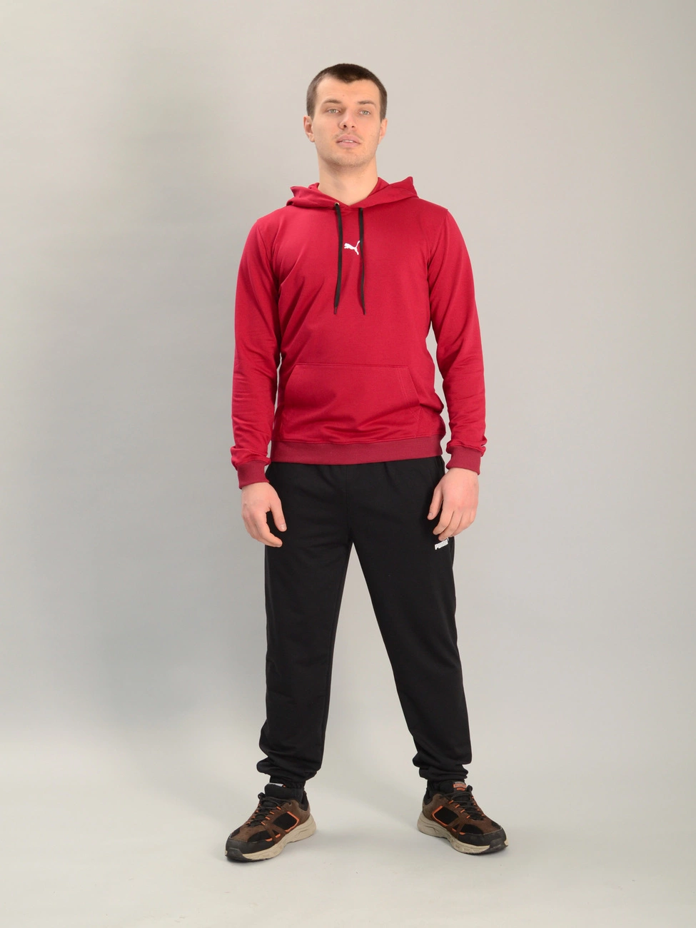 Чоловічий спортивний костюм із кофтою-кенгуру puma бордовий, Ростовка (4 шт)