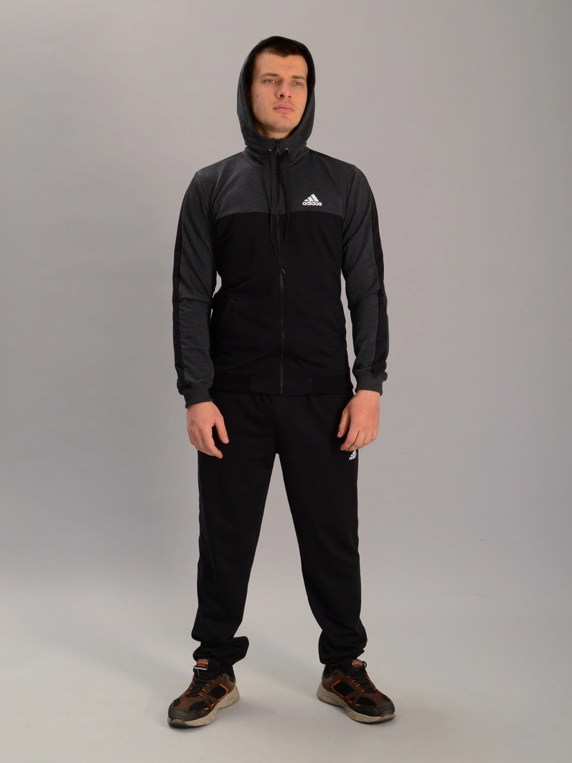 Чоловічий спортивний костюм із кофтою на замку з капюшоном adidas антрацитово-чорний, Ростовка (4 шт)