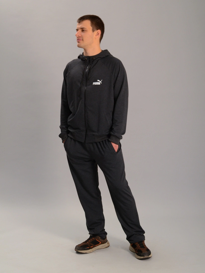 Чоловічий спортивний костюм із кофтою на замку з капюшоном puma антрацитовий (батал), Ростовка (3 шт)