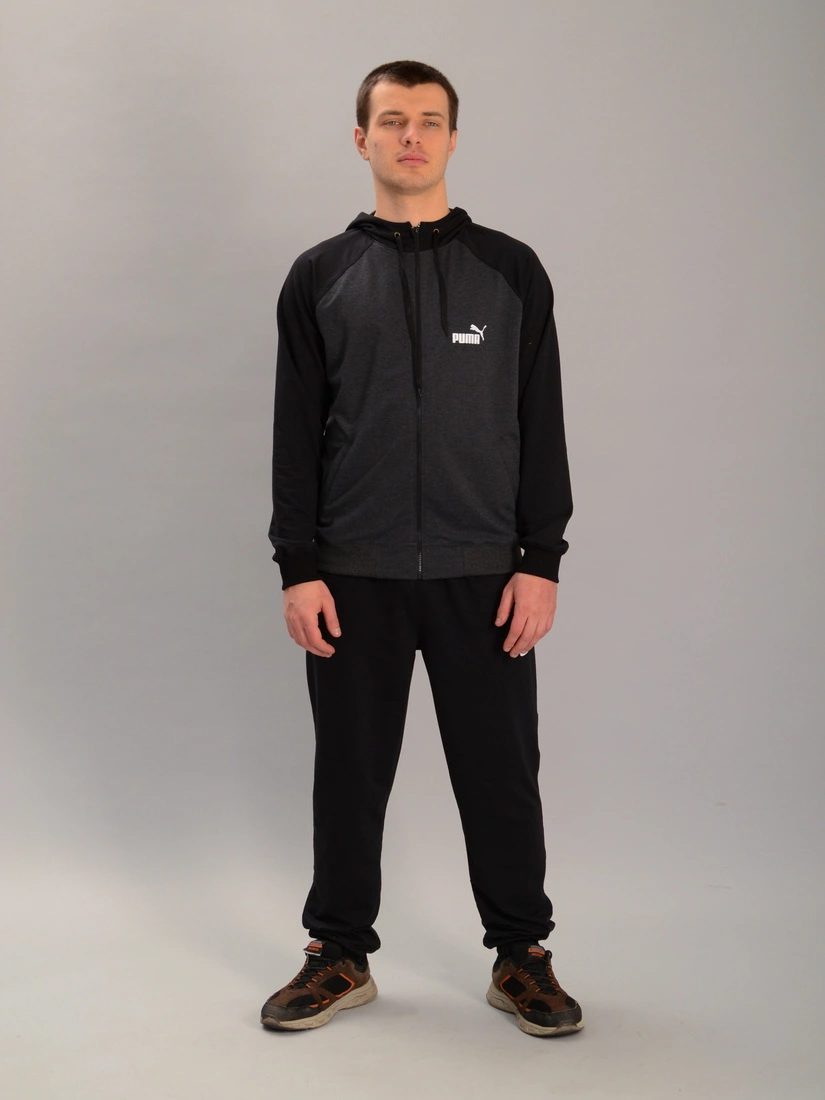 Чоловічий спортивний костюм із кофтою на замку з капюшоном puma антрацитово-чорний, Ростовка (4 шт)