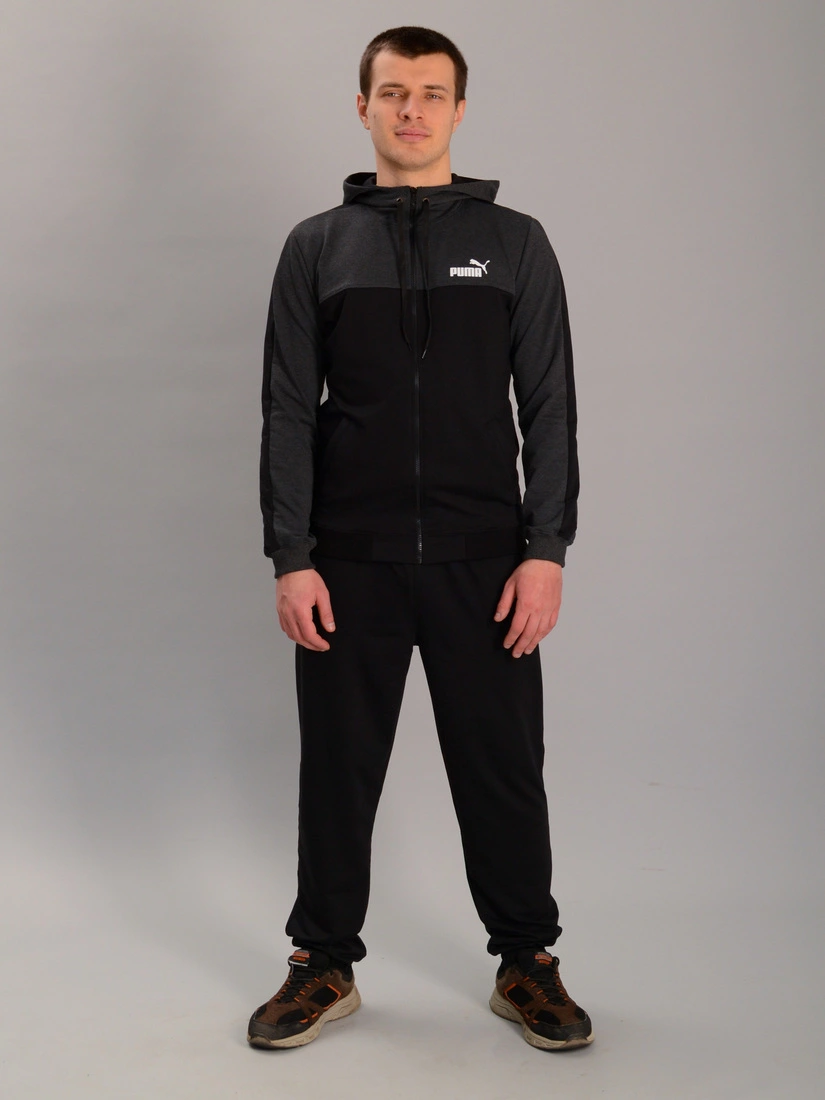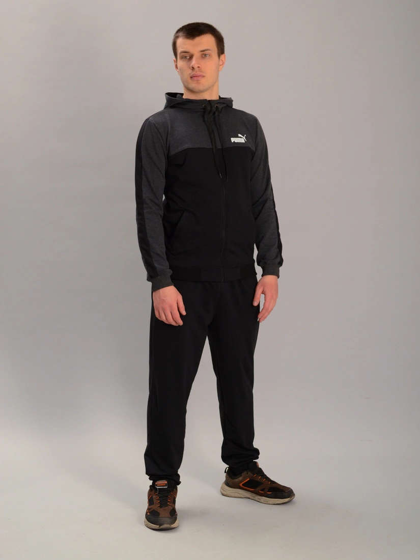 Чоловічий спортивний костюм із кофтою на замку з капюшоном puma антрацитово-чорний, Ростовка (4 шт)