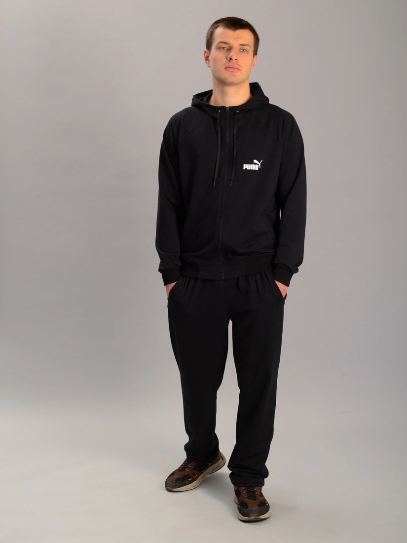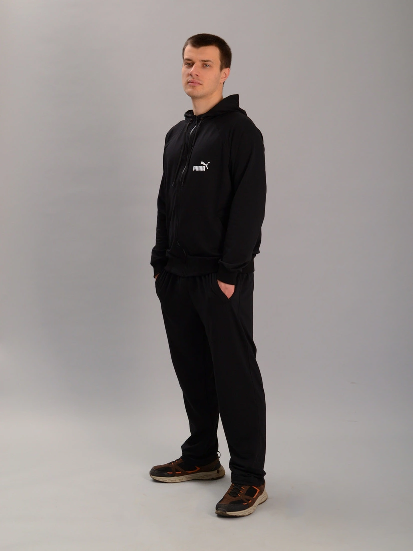 Чоловічий спортивний костюм із кофтою на замку з капюшоном puma чорний (батал), Ростовка (3 шт)