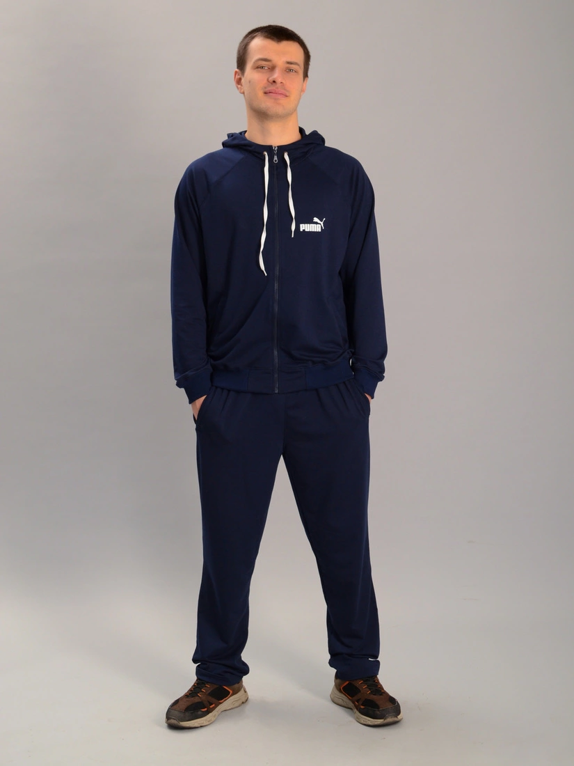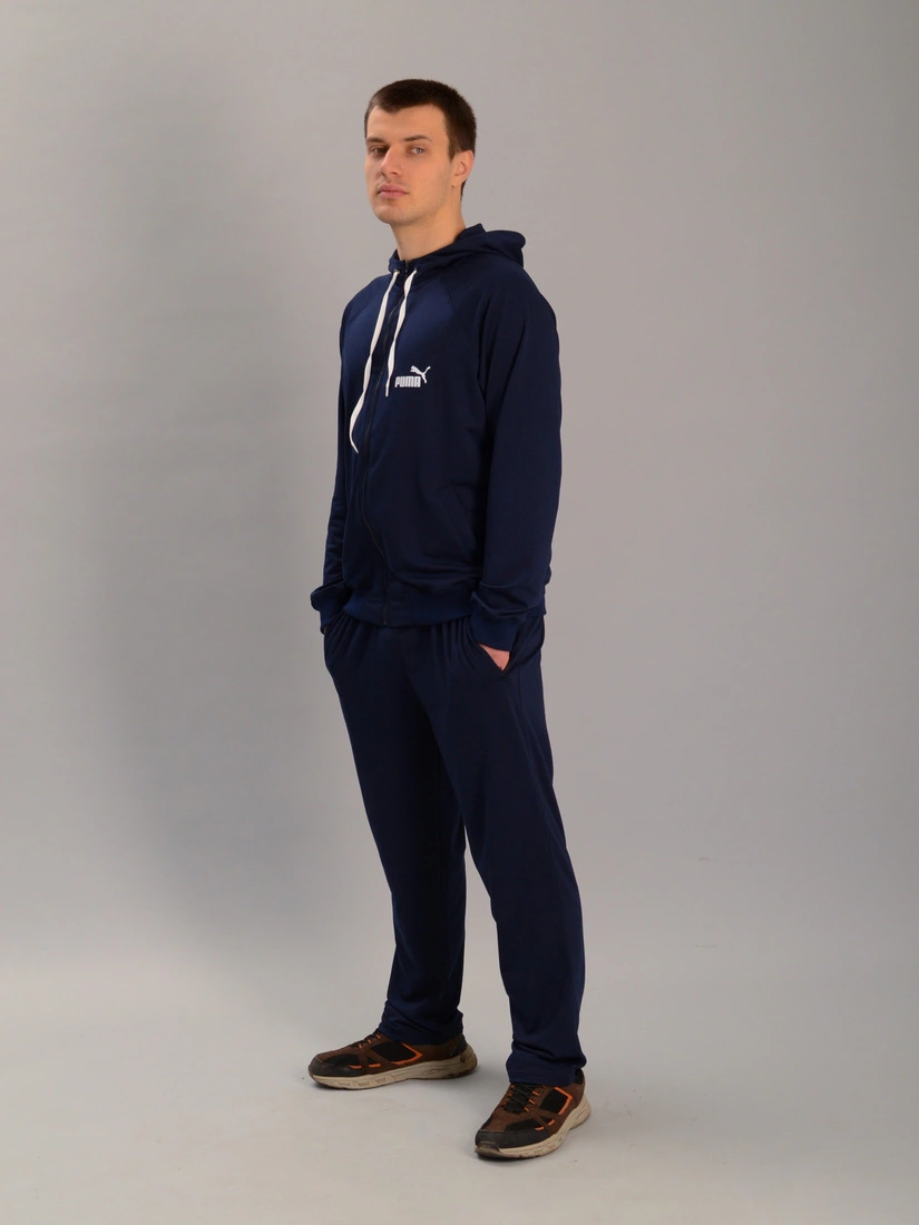 Чоловічий спортивний костюм із кофтою на замку з капюшоном puma синій (батал), Ростовка (3 шт)